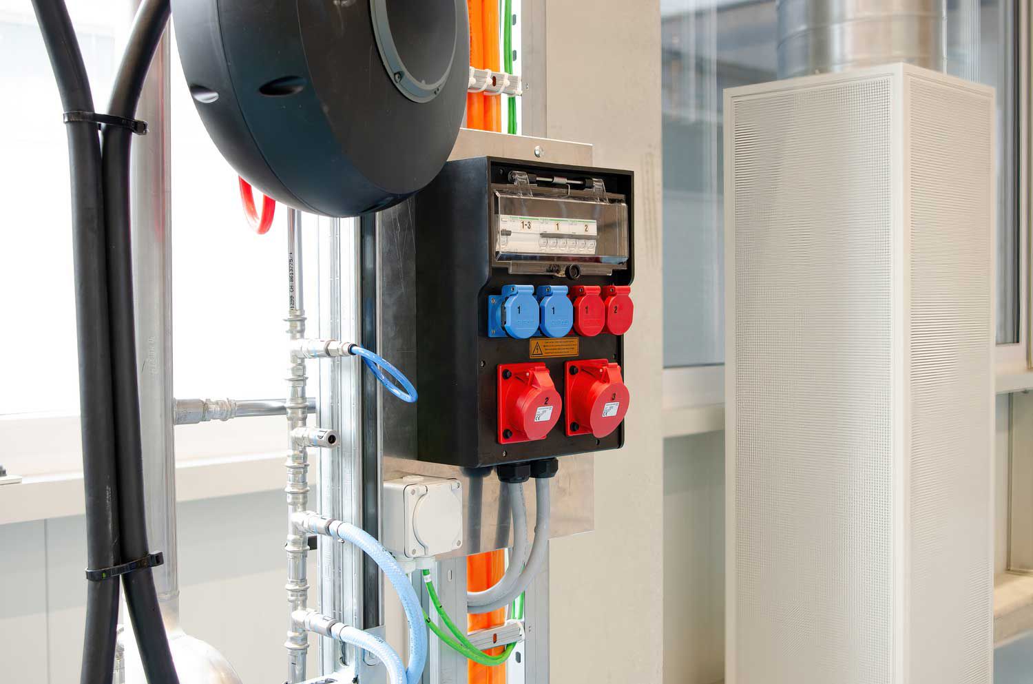 Wandverteiler, mobile Verteiler und FI-/Personenschutzschalter lassen sich optisch anpassen und nach Kundenwunsch konfigurieren. Für besonders hohe Ansprüche bieten wir abschliessbare Schaltgerätekombinationen aus V2A-Edelstahl – sicher auch im gesteckten Zustand nutzbar.