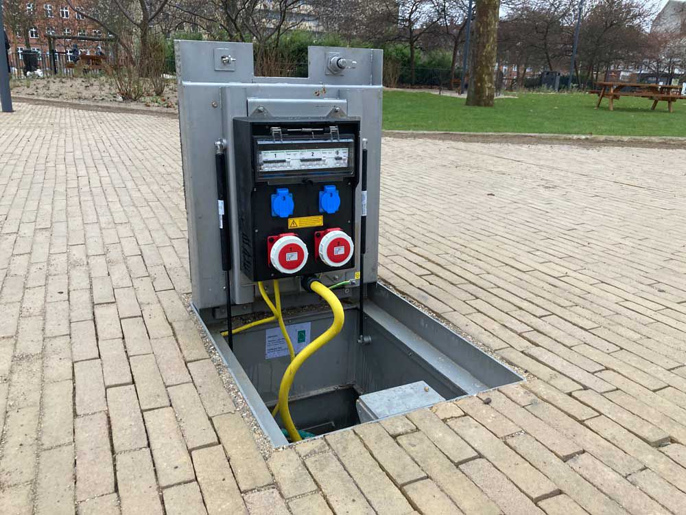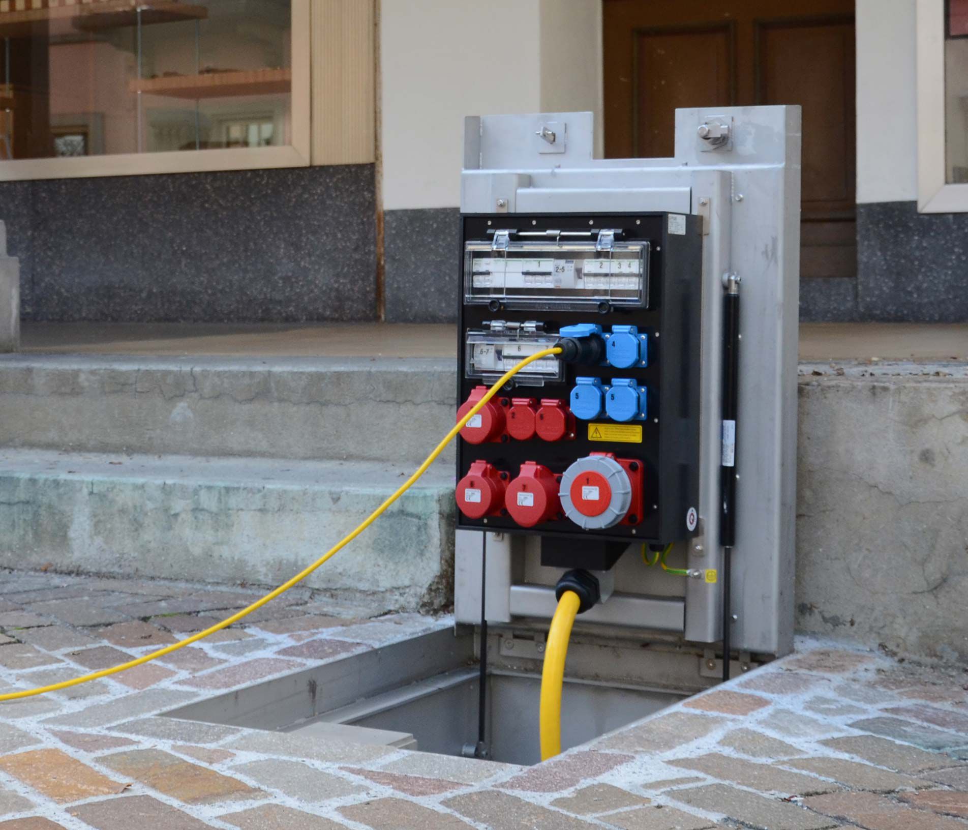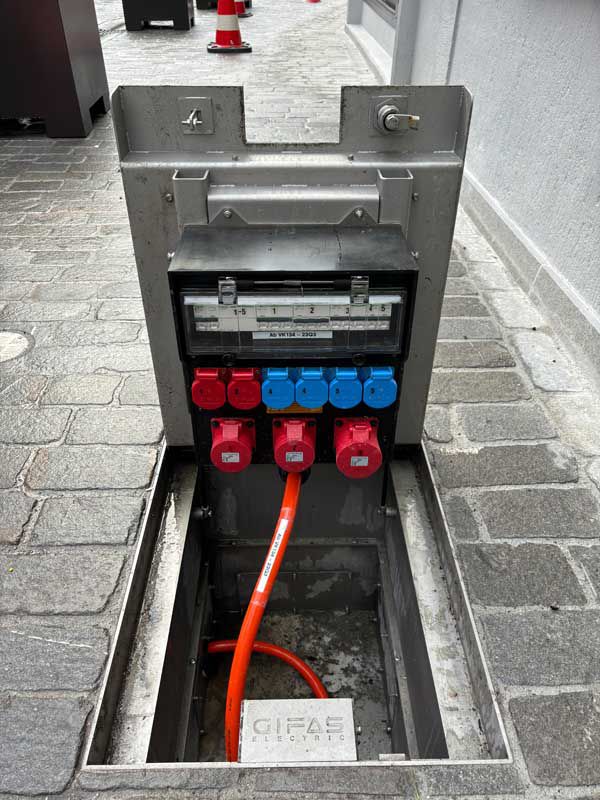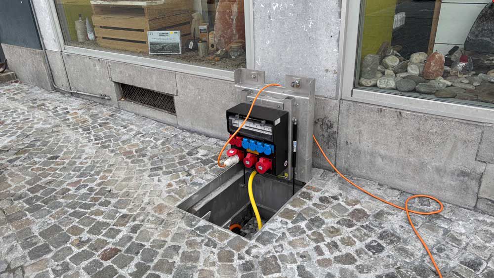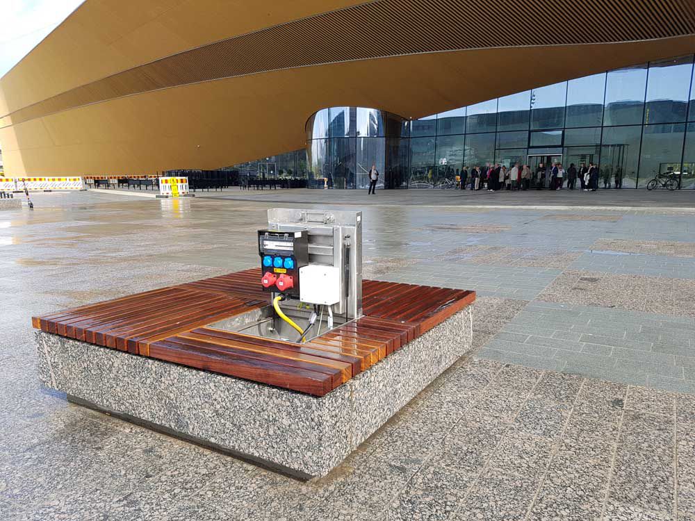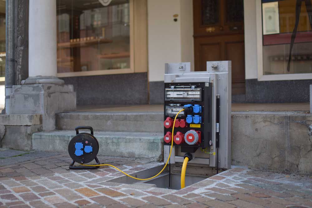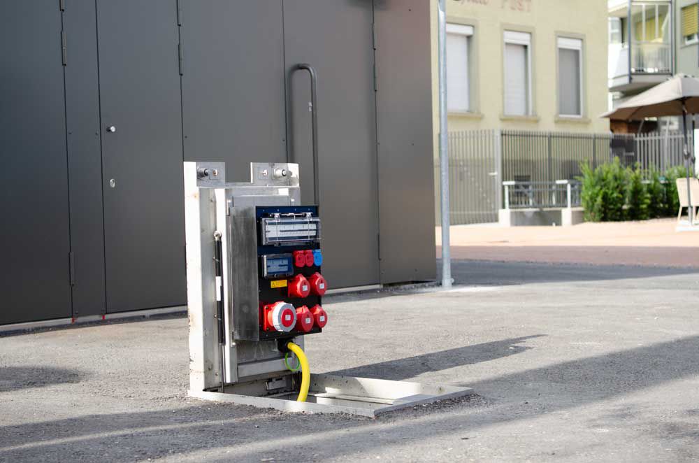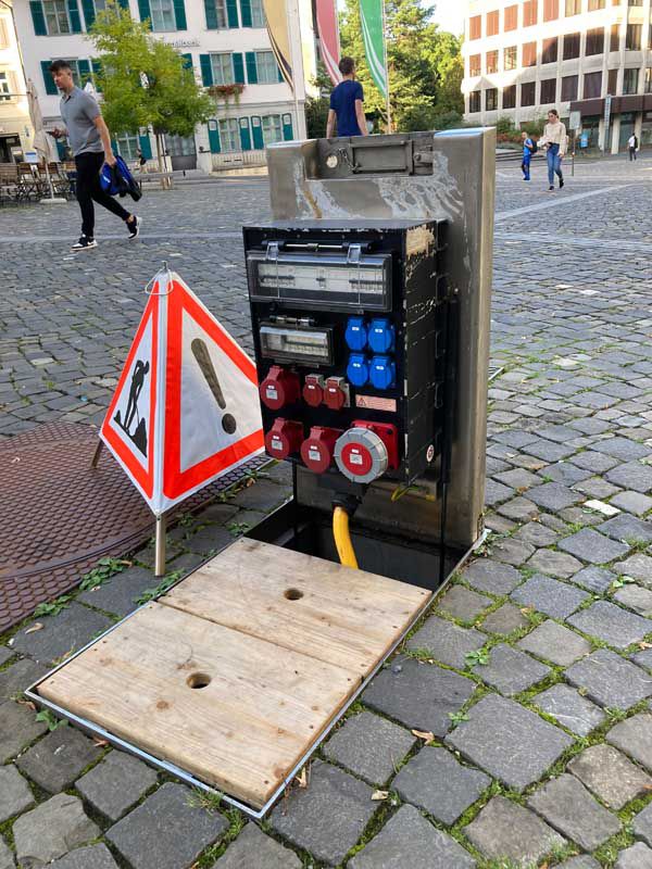 The CAMPETTO underfloor power distributor supplies public spaces with electricity inconspicuously - quickly and easily, so that events and other activities such as markets etc. run smoothly.