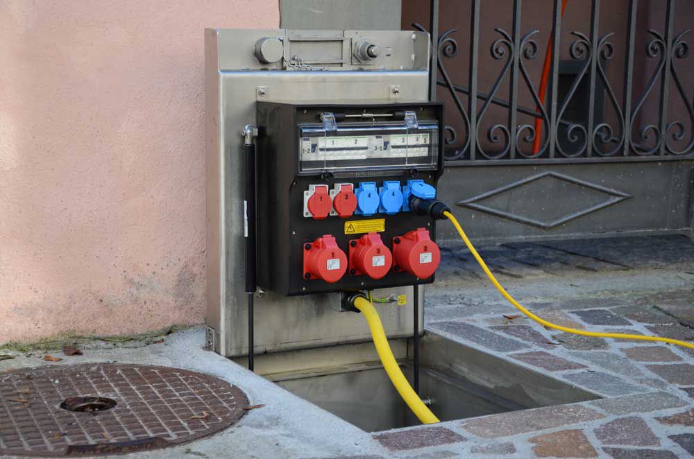 Provides temporary power for outdoor spaces