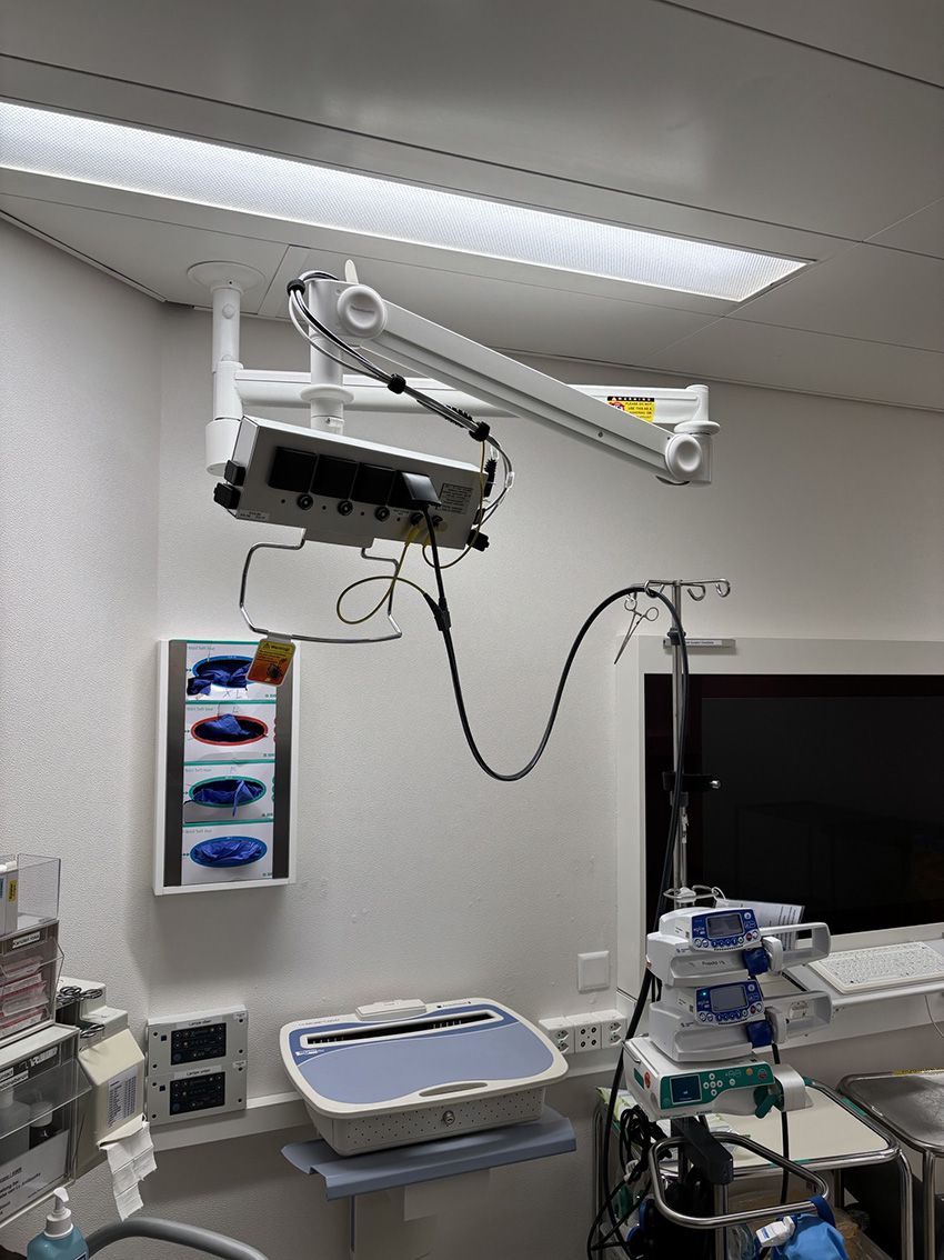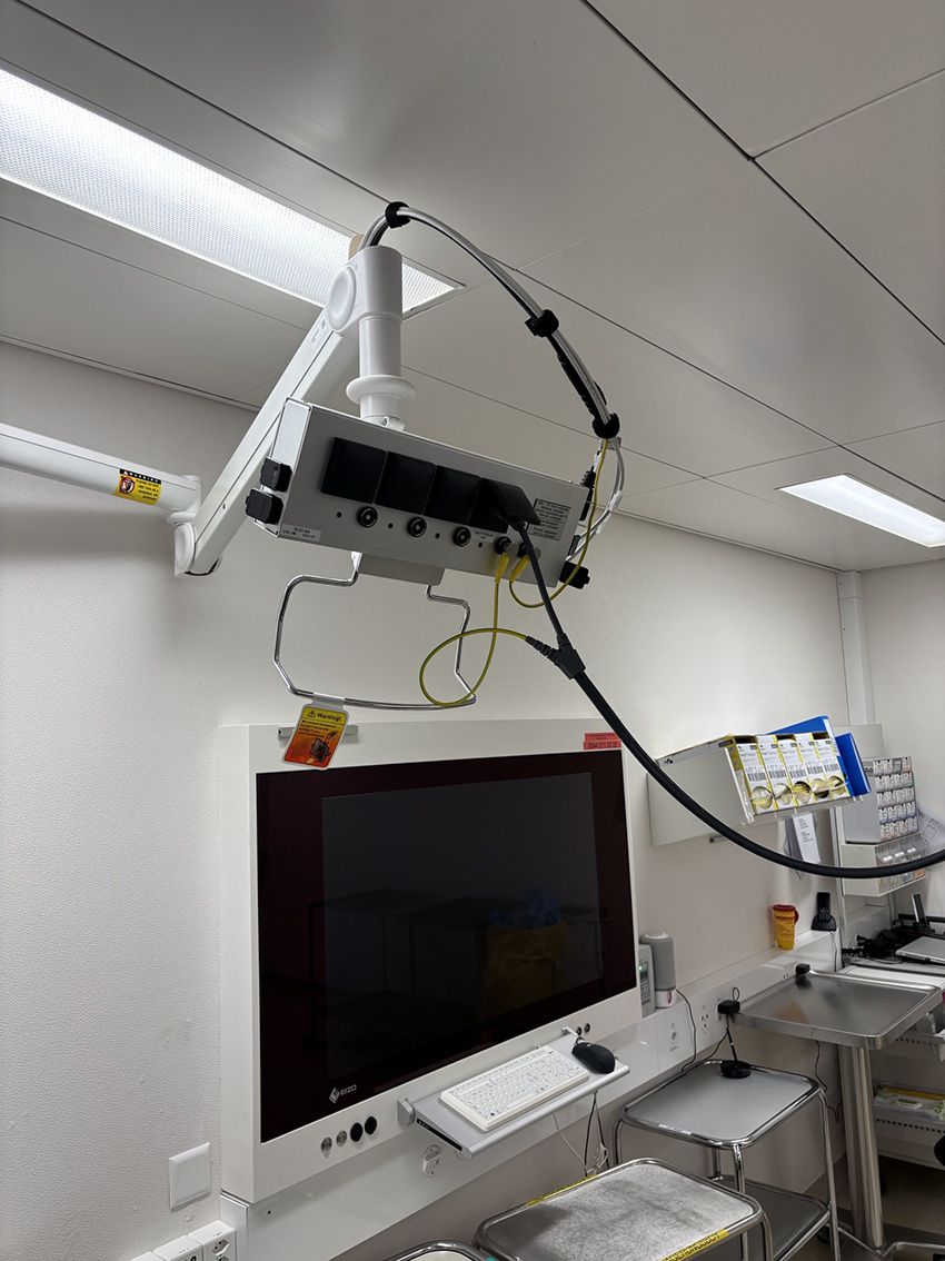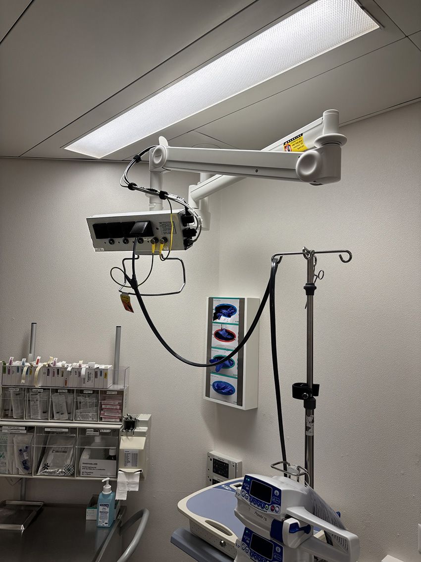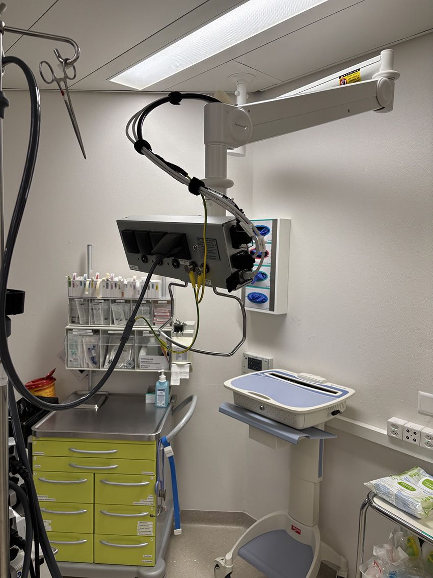 The hospital box on the swivel arm solved this critical issue: all connections are now safely and clearly located outside the working area. The result is a tidy, clear floor and thus greater safety for the surgical team.
