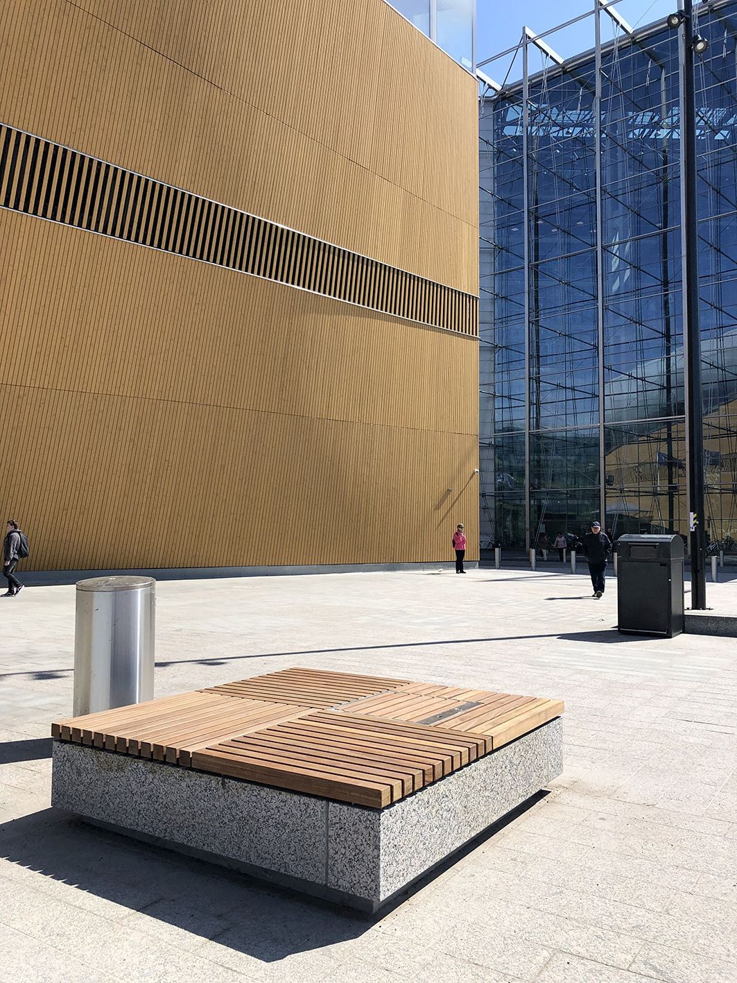La città di Helsinki era alla ricerca di quadri di distribuzione «invisibili» per Piazza Kansalaistori (proprio di fronte alla nuova biblioteca centrale di Oodi), da integrare in cinque panchine.