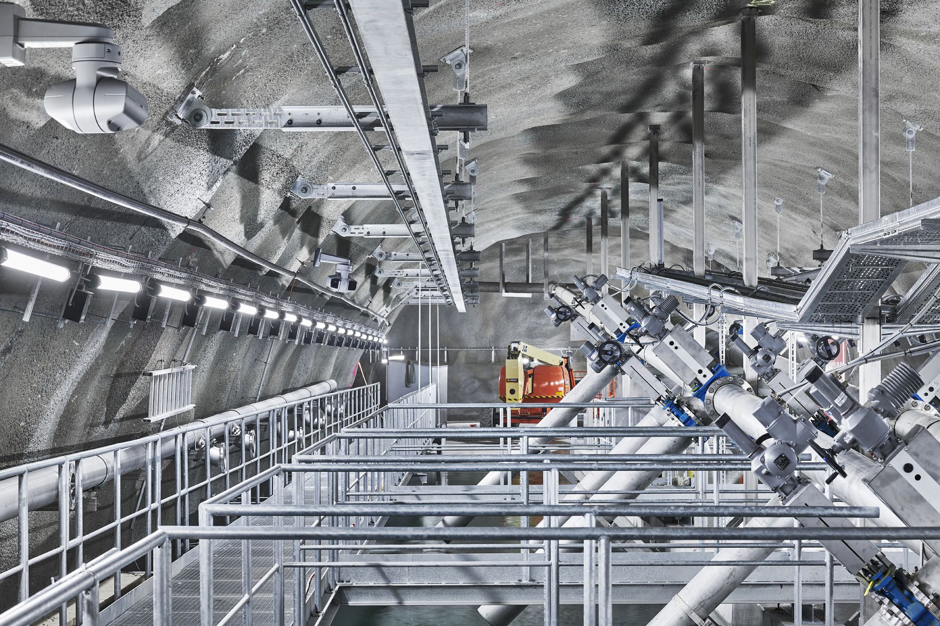 Illuminazione della caverna nella galleria di base di Lötschberg